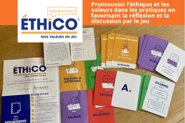 Destiné aux personnels des SAAD, SSIAD et servie autonomie, ce jeux favorise la réflexion éthique à partir de situations concrètes.